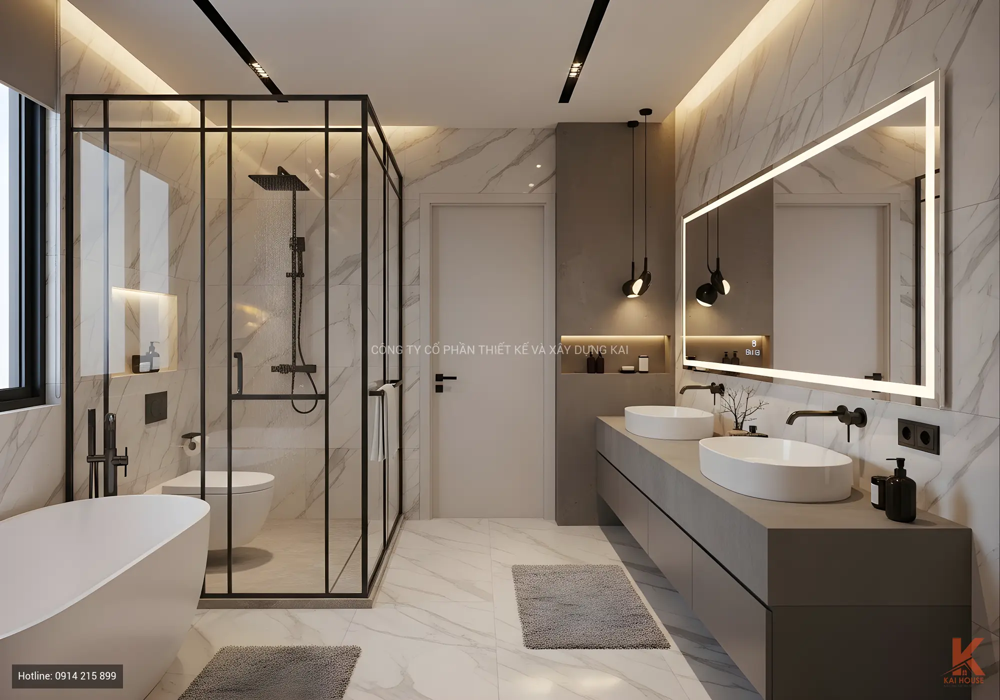 Phòng tắm sở hữu phong cách hiện đại và tối giản,
