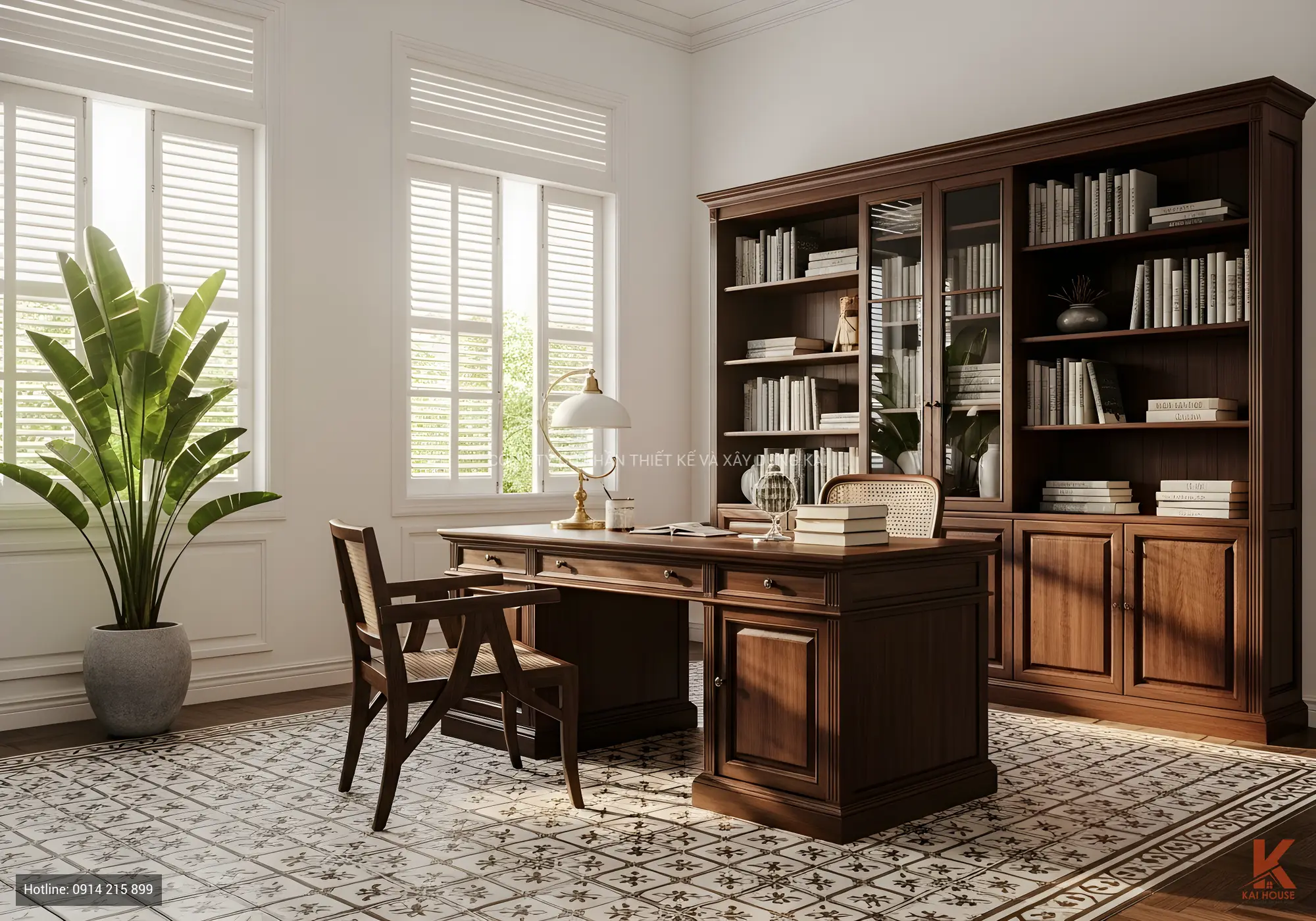 Không gian làm việc này mang phong cách cổ điển,
