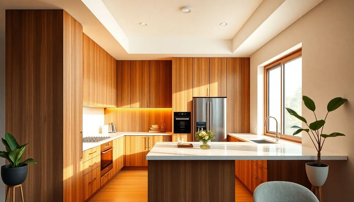 Sử dụng màu sắc vân gỗ ấm áp và tone màu be cân bằng năng lượng
